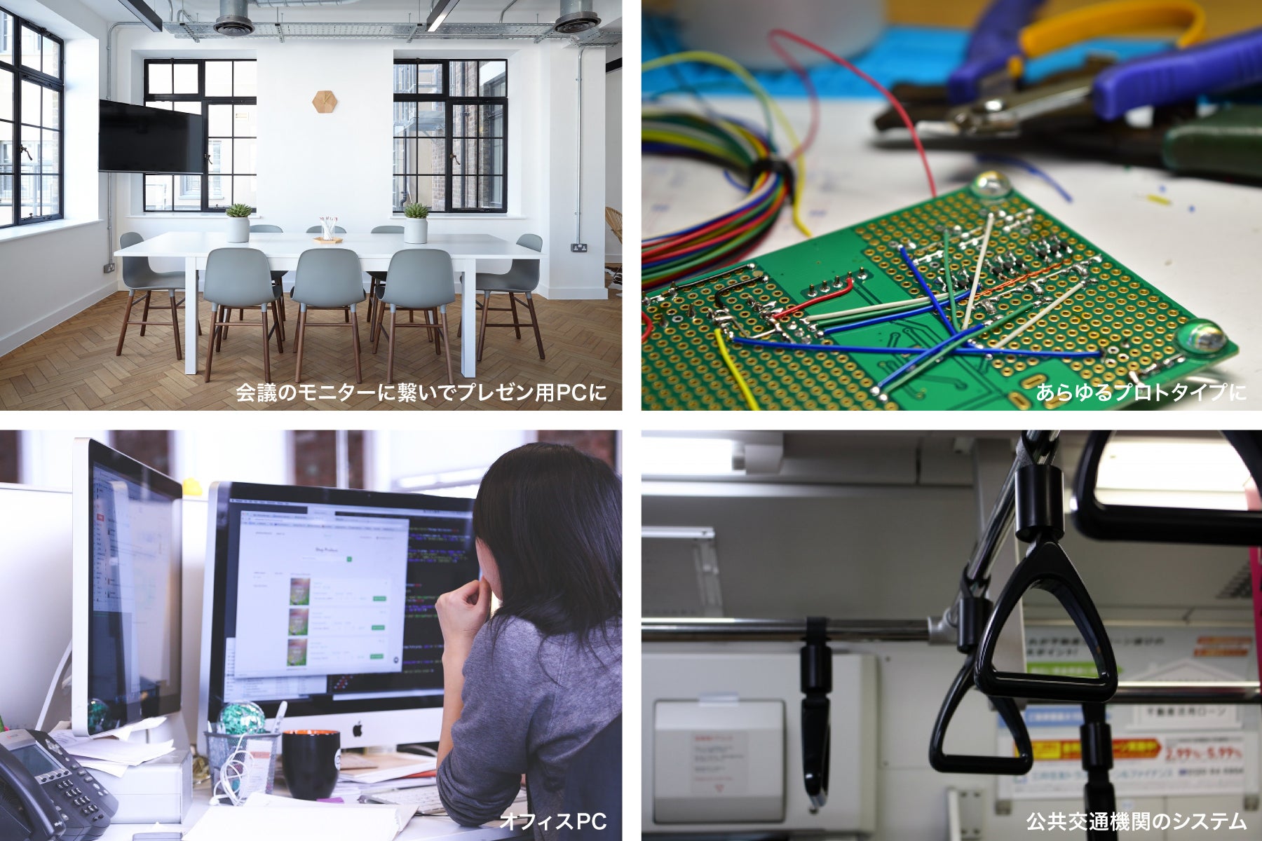 ほかにも公共交通機関システム、スマート会議、スマートホーム、自動レジへの活用などなど。安価で小さなデスクトップPCが、ビジネスの可能性をさらに広げます。