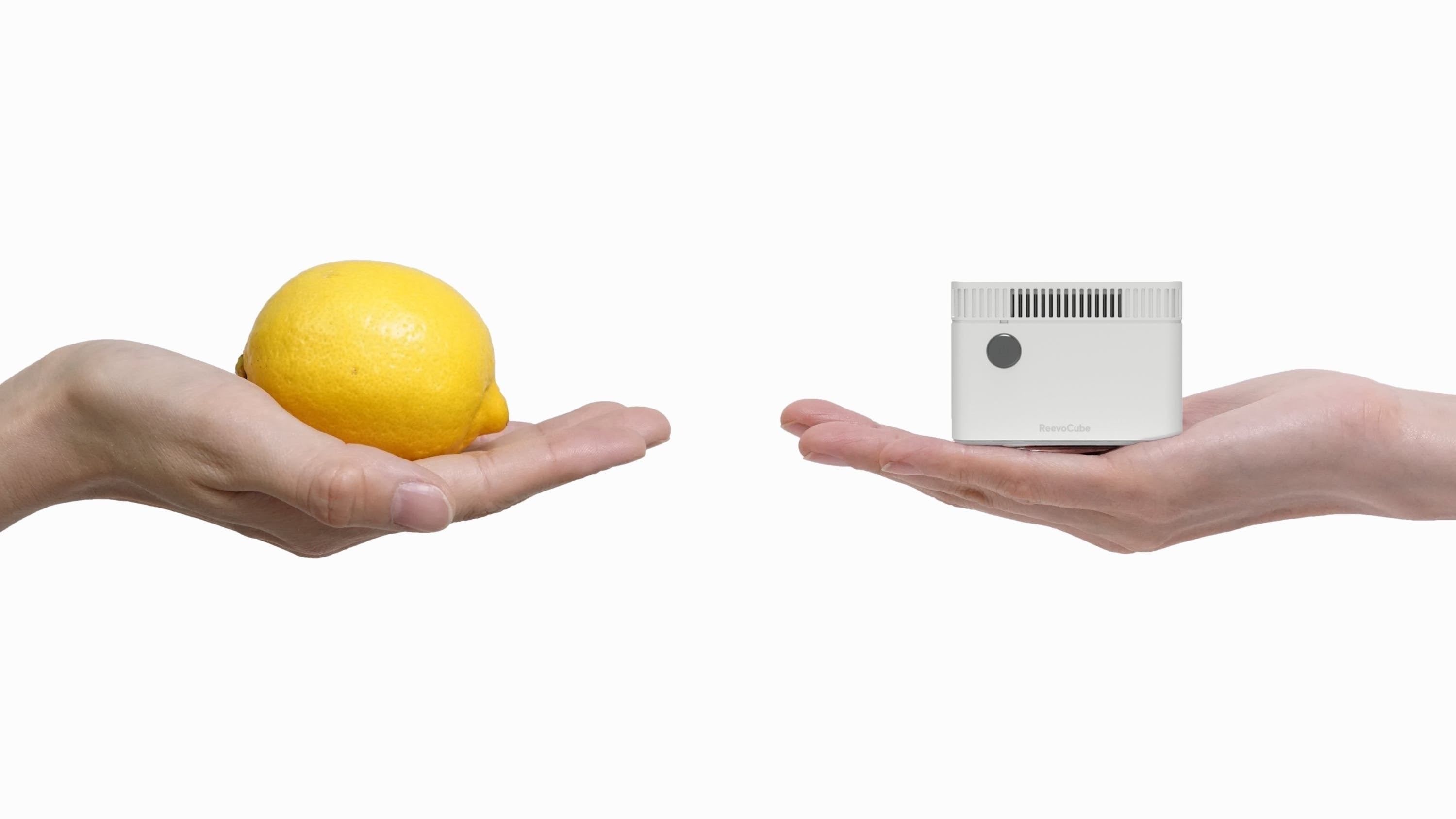サイズは手のひらに収まる61×61×43mm。レモンを思い浮かべていただければ、その小さなサイズ感をイメージしやすいかもしれません。