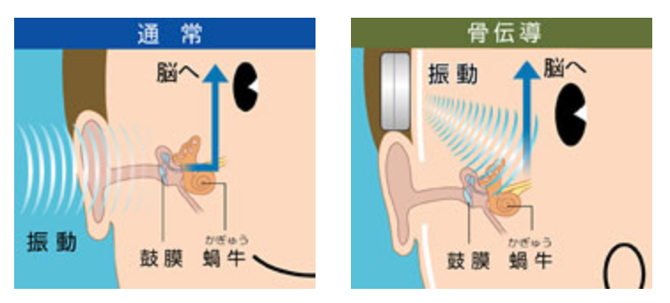 それに対し、骨伝導は骨を振動させて鼓膜を介することなく音を伝えます。