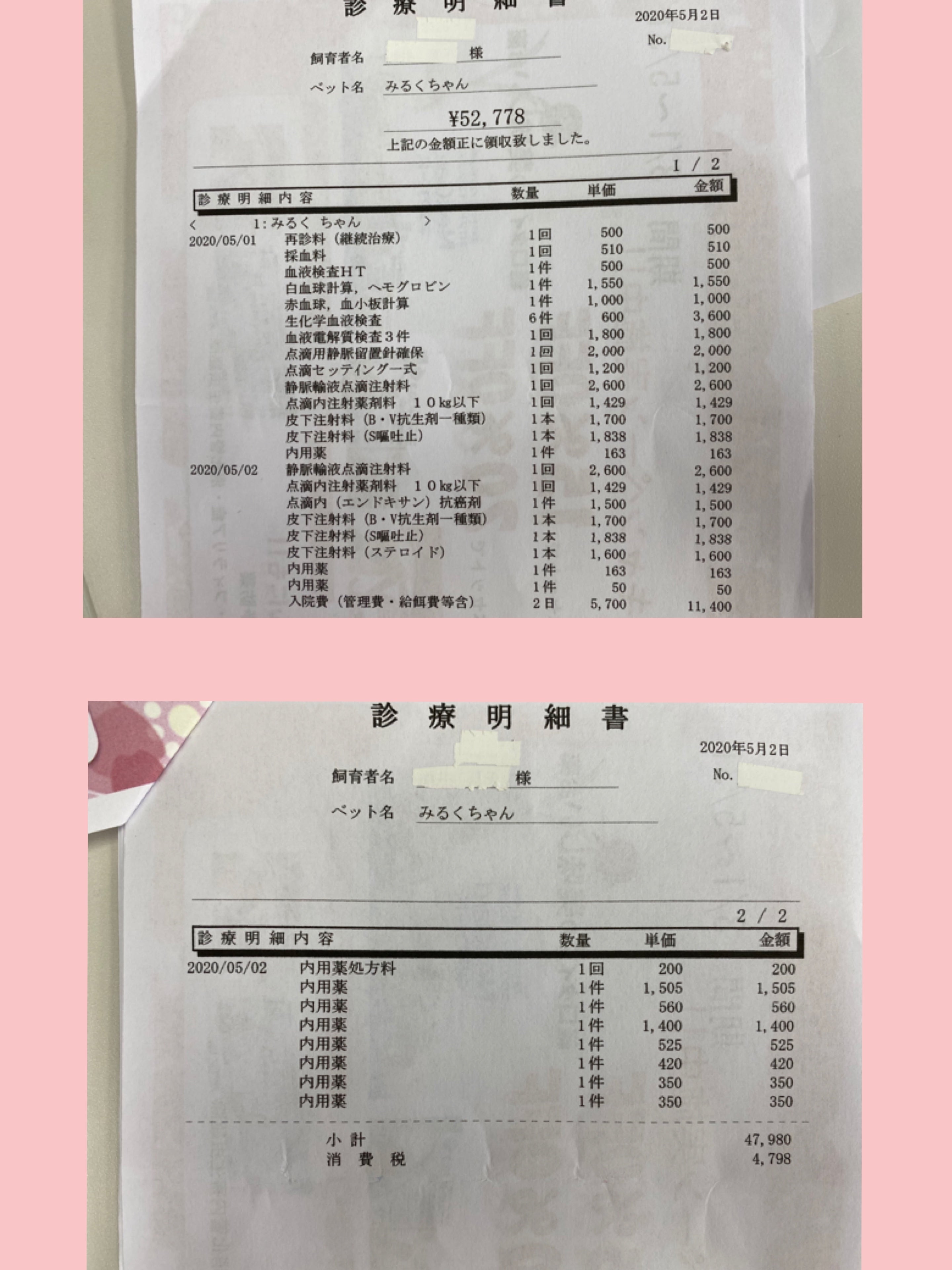 資金はみるくの抗がん剤治療、通院、その他諸費用に使わせて頂きます。