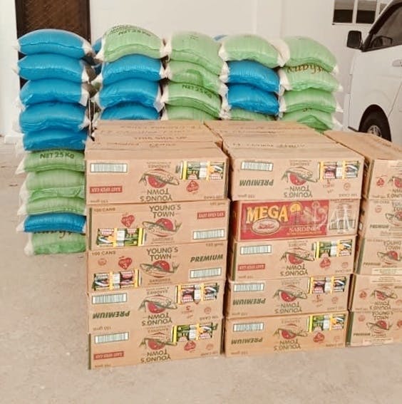 1000袋の米缶詰3000カートン、インスタントヌードル1600カートンを支援してきました。