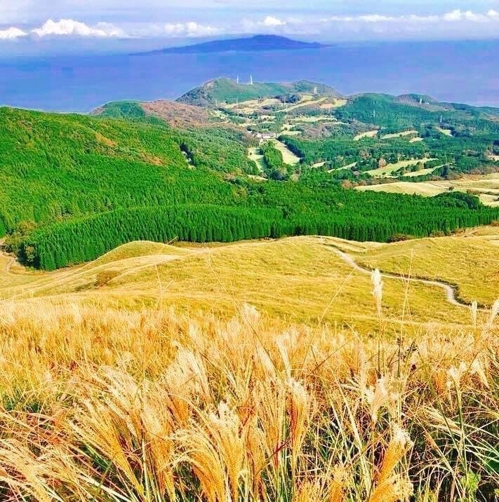 国道135号線から車で10分ほど山手に入ると目の前に広大な高原が現れます。新たな観光スポットとして人気を集める「稲取細野高原」です。面積は約125ha、東京ドーム26個分の広さを誇ります。春は山菜狩り、秋は黄金色に輝く一面のススキ野原、そして一番のおすすめは、隣接する三筋山の山頂から伊豆七島を望む大パノラマ眺望です。他では見ることができない絶景ポイントとなっています。
