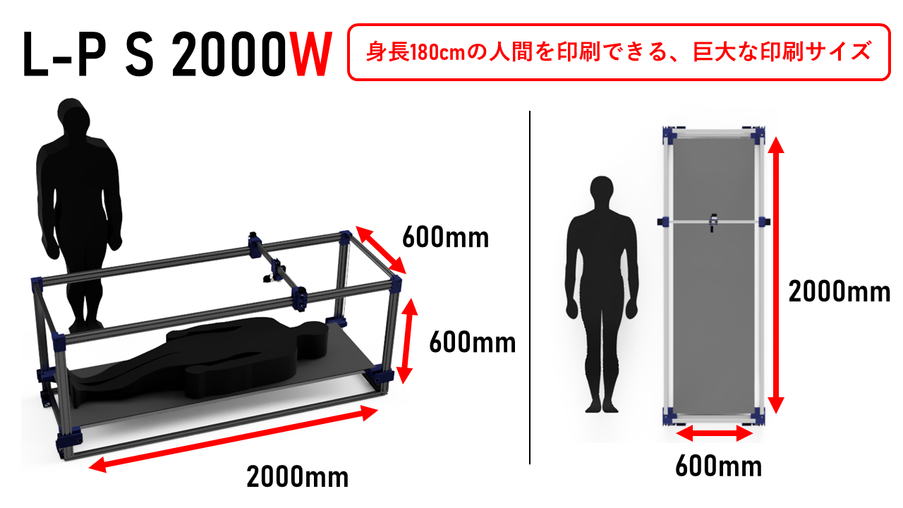 印刷可能エリアは ( 2000mm * 600mm * 600mm )