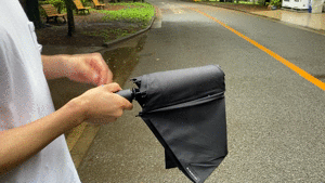 開閉が簡単でも、折り畳み傘は名前の通り、しまう時に手動で折り畳む動作が必要です。
