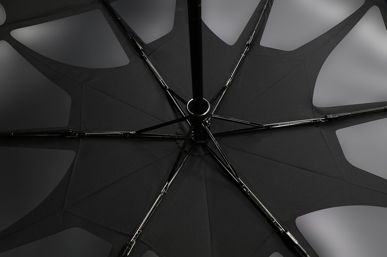 折り畳み傘の骨は強風に負けて折れることが良くありますが、繊維強化プラスチックなら折れることなく元通り。風速110km/hにも耐えることができます。