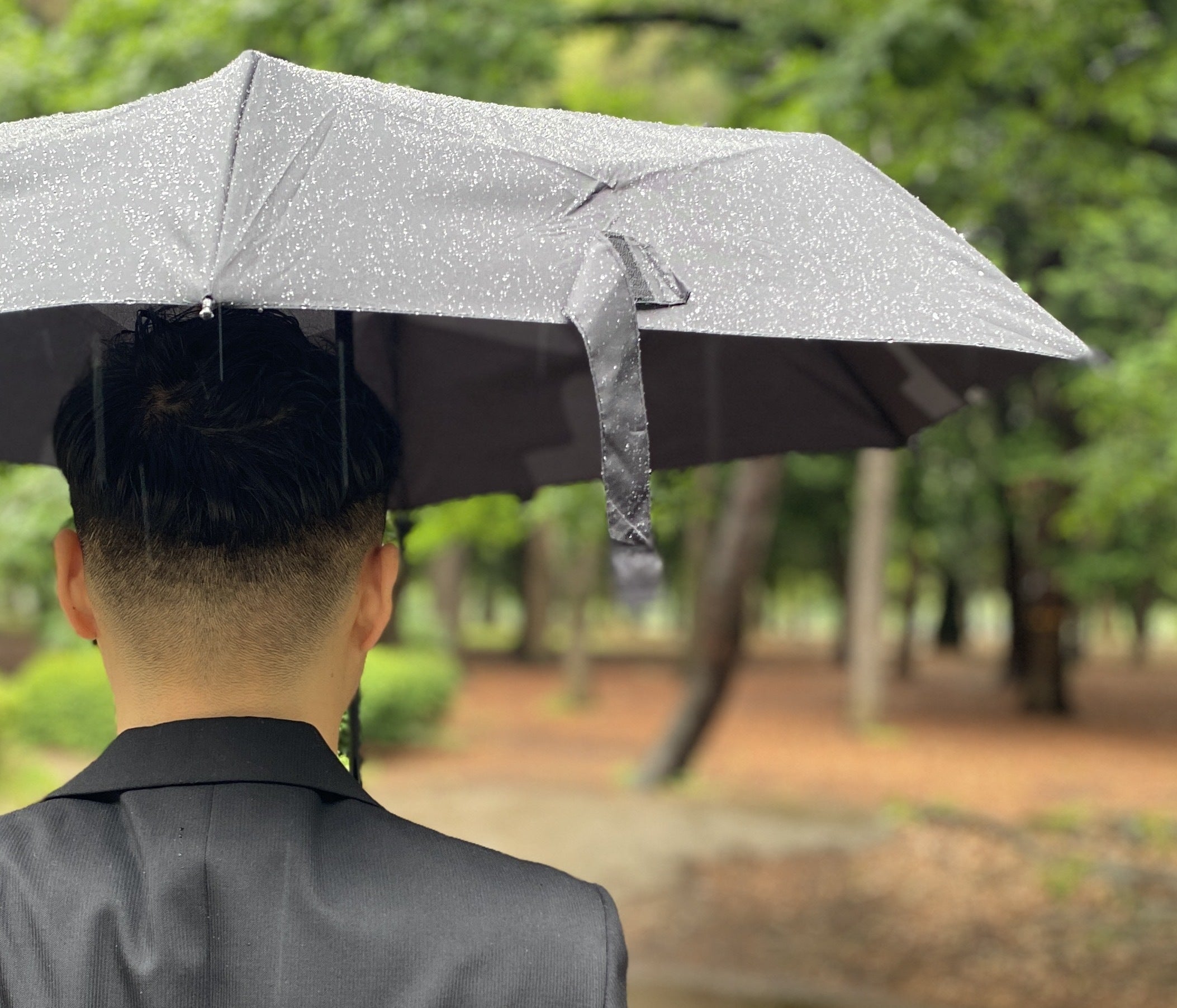 傘布の表面に薄膜を形成するナノコーティングを施すことで、傘布についた雨水は丸まって吸収しません。※細かい水分は傘布の表面に残る場合がございます。