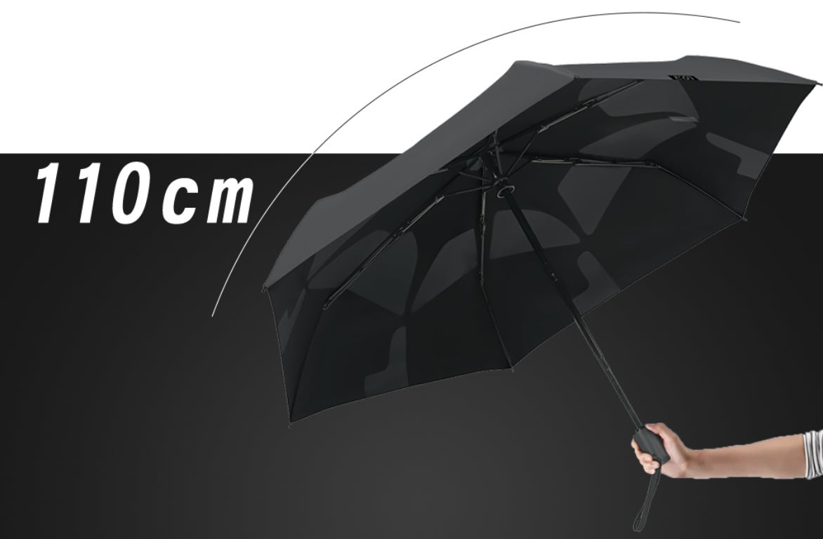 傘布は110cmと、折り畳み傘にしては広々と使用できます。リュックサックを背負っていても、手荷物を持っていても身体と荷物をしっかり守ってくれます。
