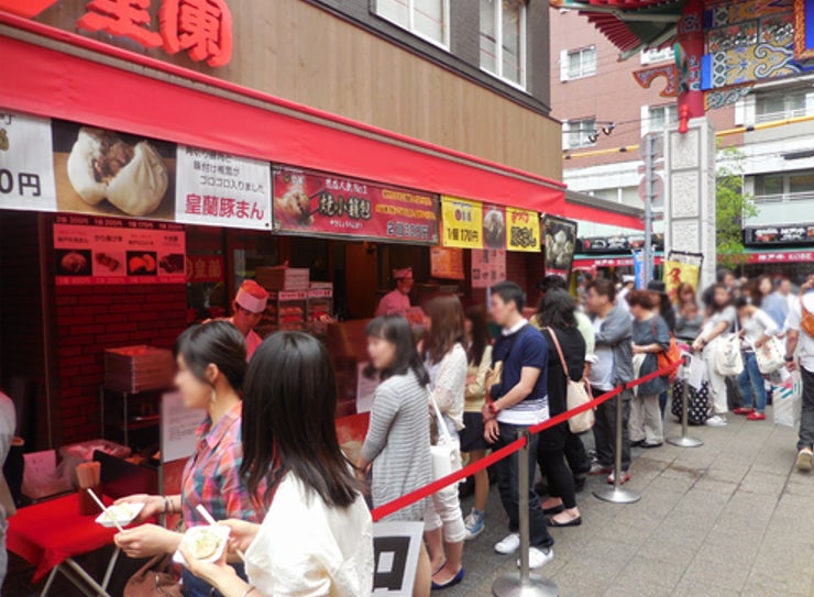 いつも明るい活気で賑わう神戸南京町の一画でこんなにもたくさんのお客様が列を成していただき弊社の肉まんやラーメンなどをお楽しみいただいております。