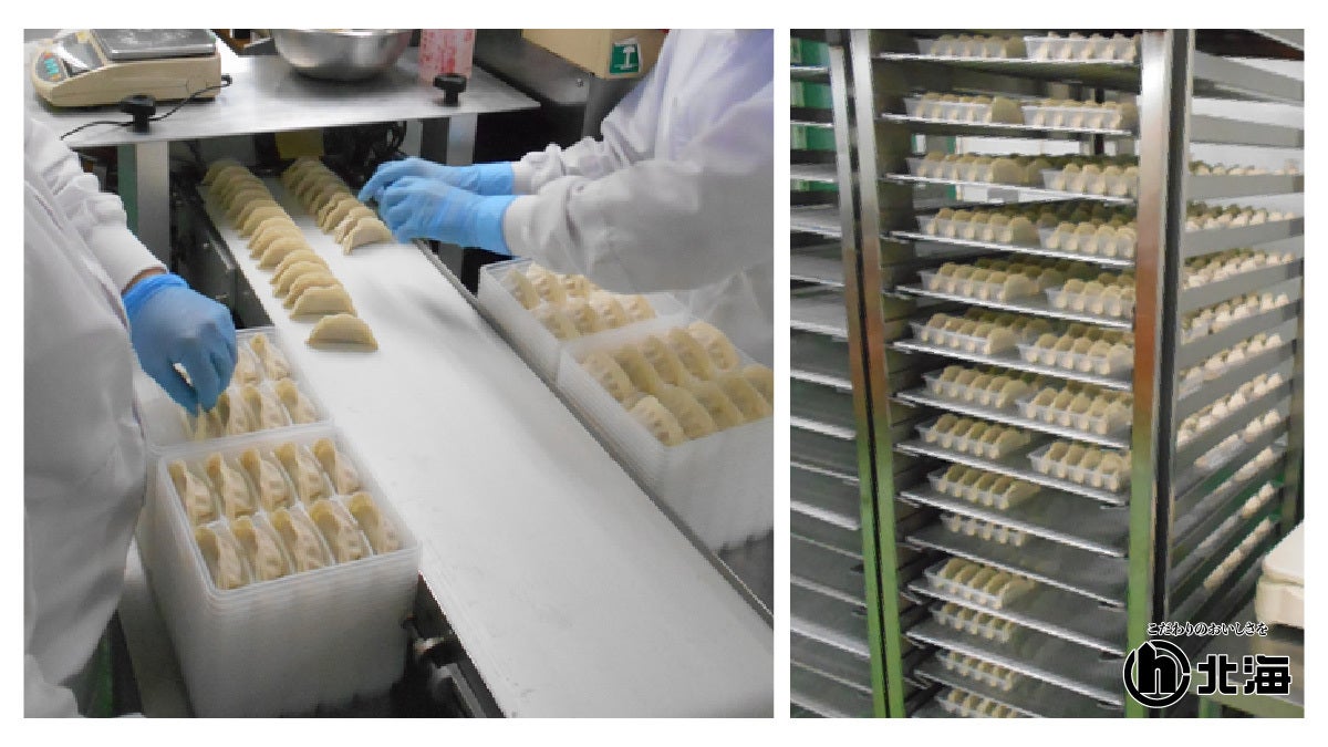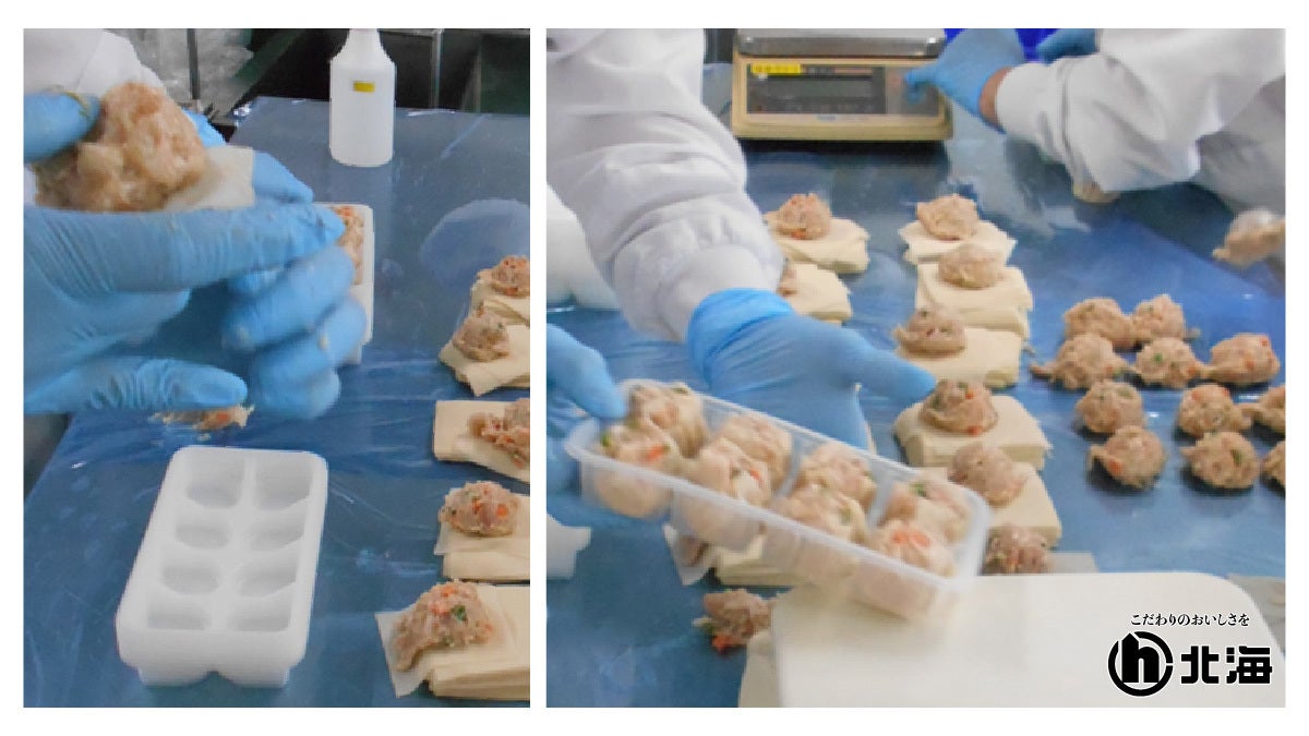こちらは焼売(しゅうまい)を手で包み、パッキングしていく作業の一部です。