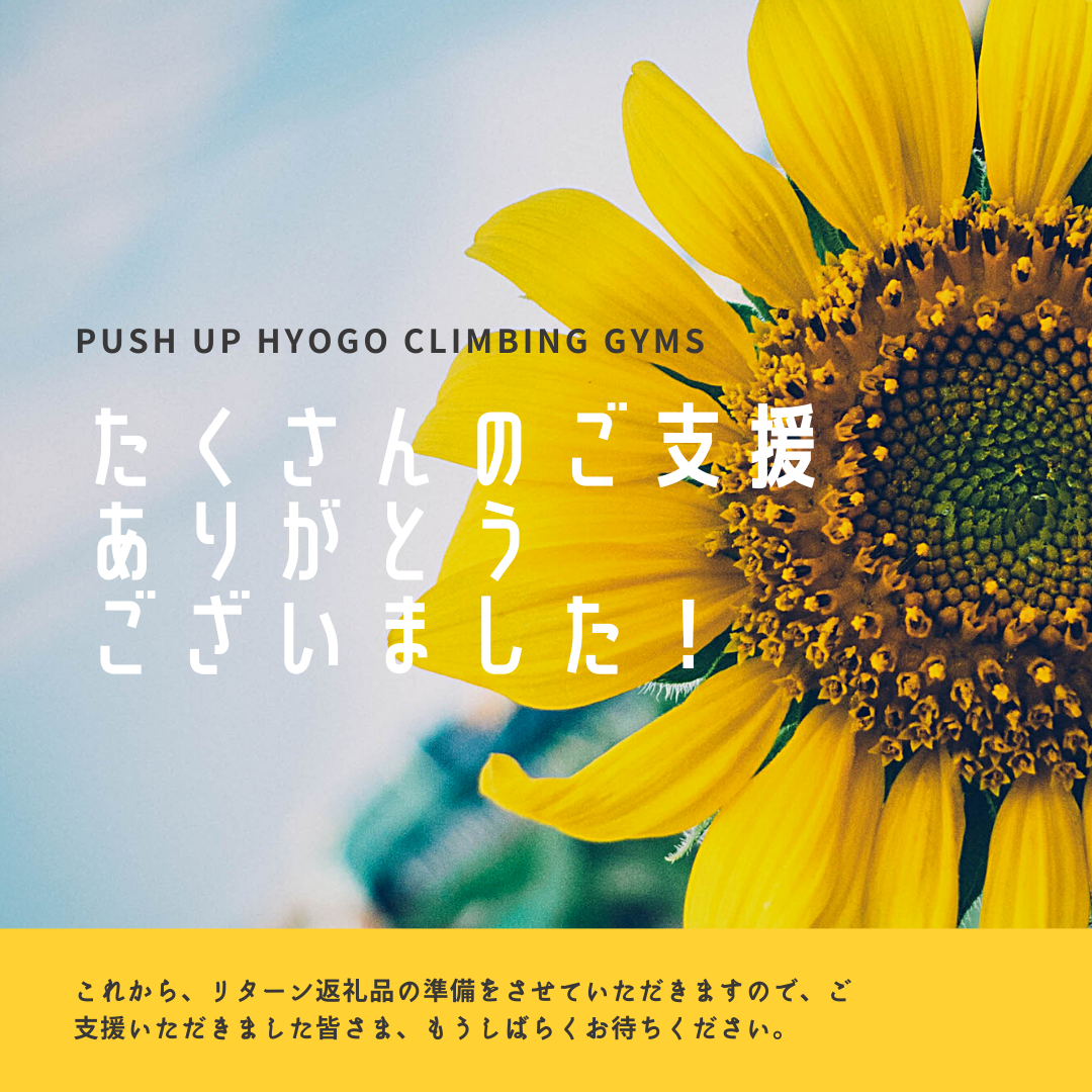 2020/07/31 12:46皆様のおかげで、約70万円ものご支援を賜りました!沢山の応援、身の引き締まる思いです。これから、リターン返礼品の発注、発送作業に取り掛かります。もうしばらく、ワクワクお待ちいただきますようよろしくお願いいたします!ありがとうございます!PUSH UP HYOGO CLIMBING GYMS もっと見る