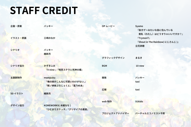 →ゲーム内エンドロールにて、お名前を掲載させていただきます