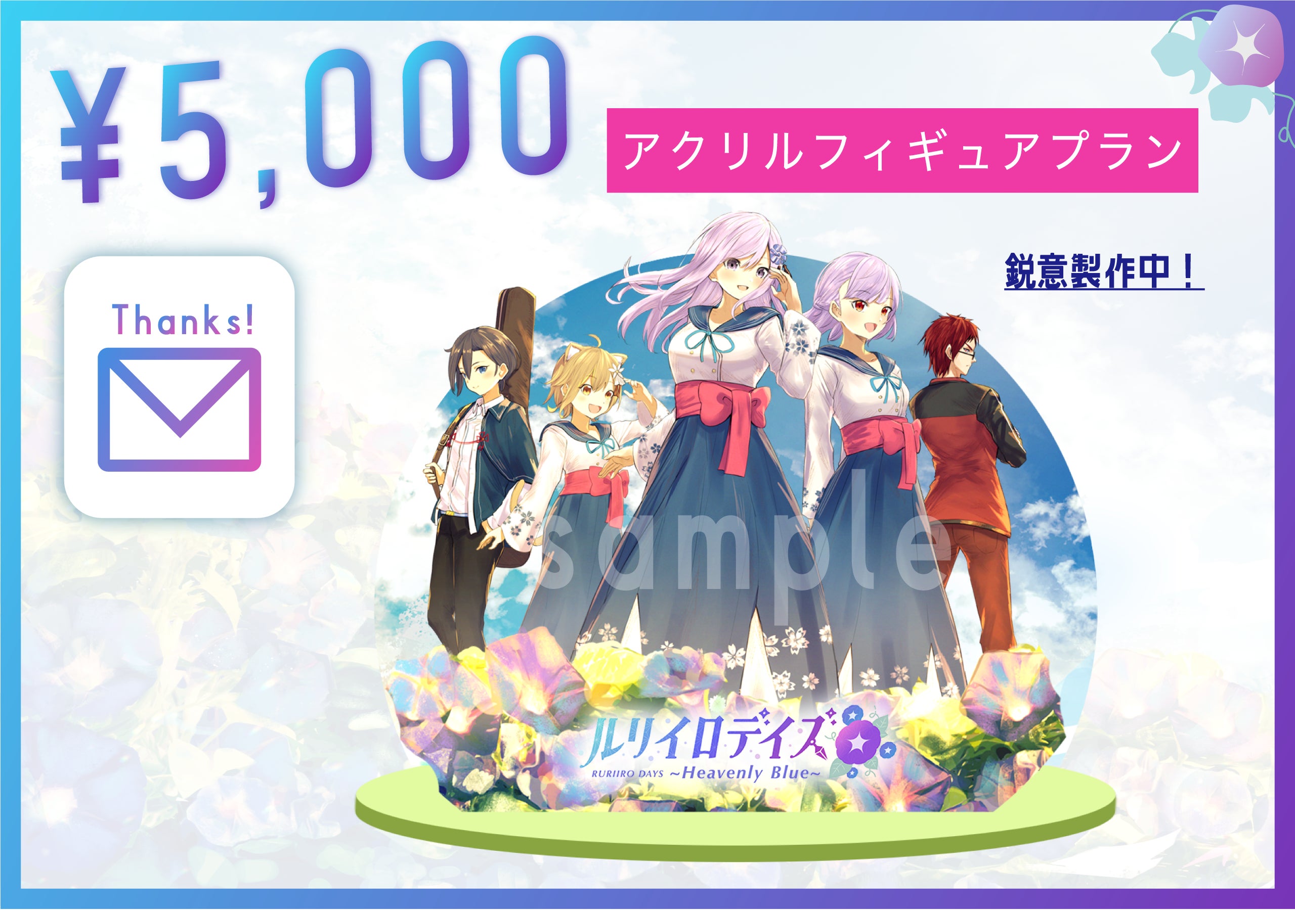 → 『ルリイロデイズ』オリジナルの豪華アクリルフィギュアをお送りいたします