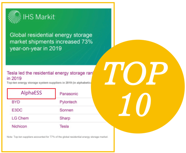 2012年に設立されたAlphaESS社は比較的若い会社ながら、家庭用蓄電システムで2019年「エネルギー貯蔵分野の世界TOP10企業」に選出されました。