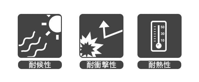 外観は、PC+ABS材質を採用しており、耐熱性、耐衝撃性、耐候性(耐候性があると屋外の紫外線などで変形しにくい)においても優れています。屋外の長時間の利用においても心配なくご利用いただけます。