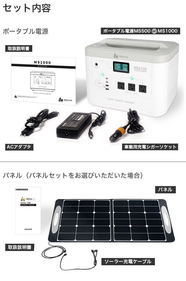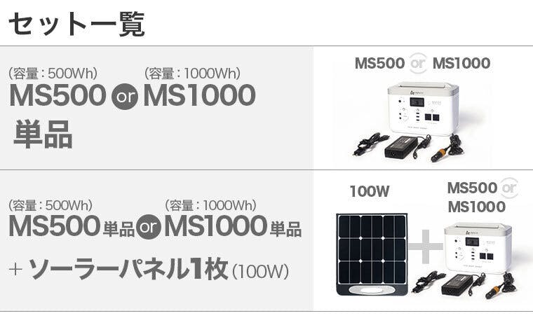 MS500(容量:500Wh)・MS1000(容量:1000Wh)・ソーラーパネルを是非ご覧ください!