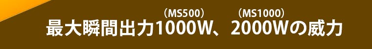本商品は瞬間最大瞬間出力がMS500で1000W、MS1000で2000Wと大きな出力がかかっても故障しない設計になっております。