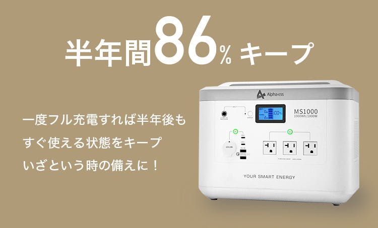 - 一度フル充電して頂くと、半年間そのまま放置しても、充電86%の状態を維持できます。長期保管の場合、半年間に1回60%~80%程度の充電をするのを推奨してます。