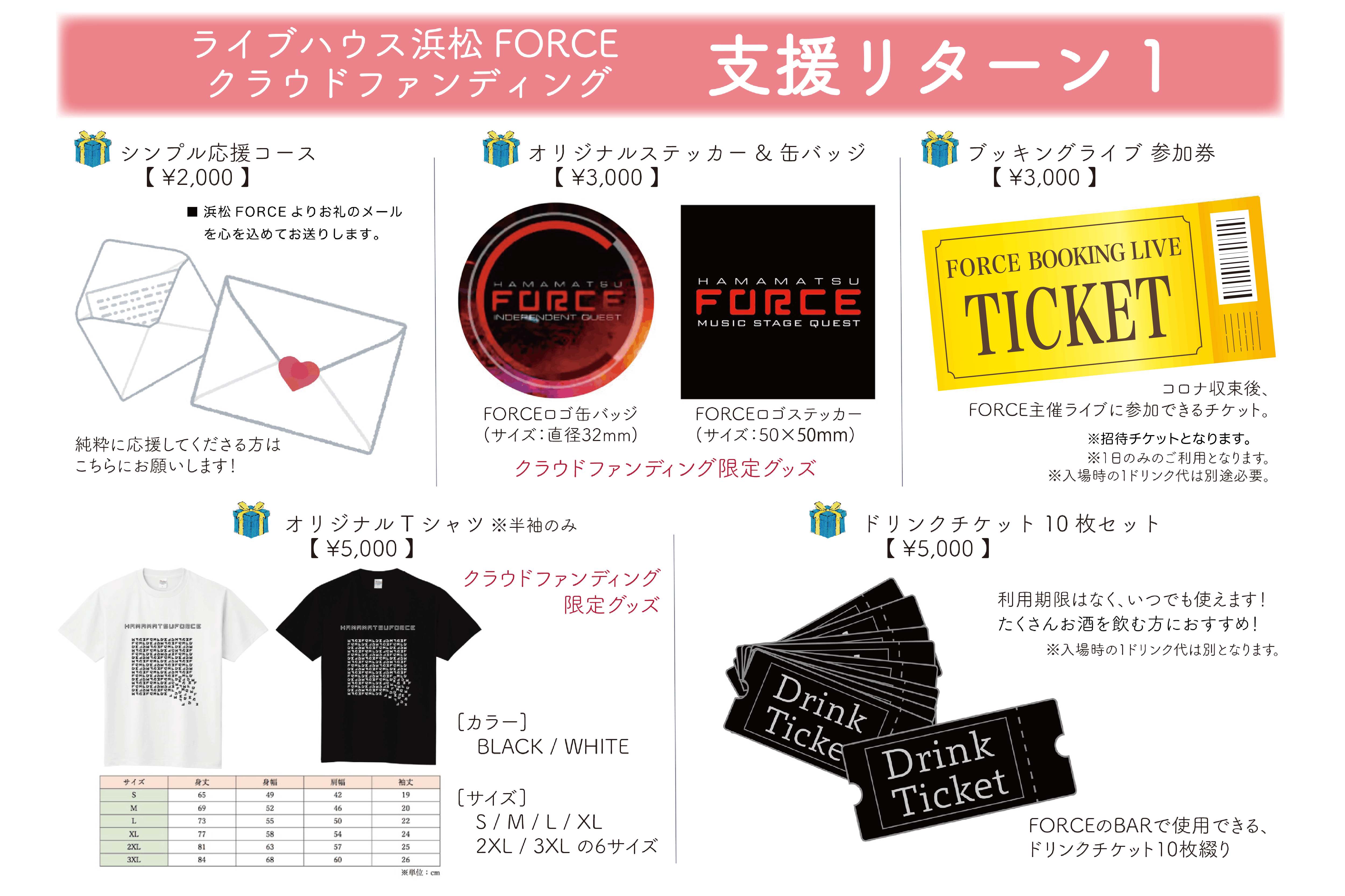 ■10000円〜【FORCEオリジナルステッカー&缶バッジ&Tシャツ&ドリンクチケット5枚】