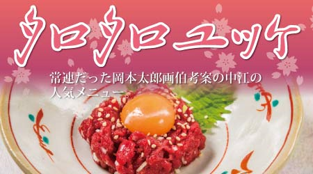 また岡本太郎画伯と共同でつくった、「タロタロユッケ」は今も続く中江の名物メニューとなっています。