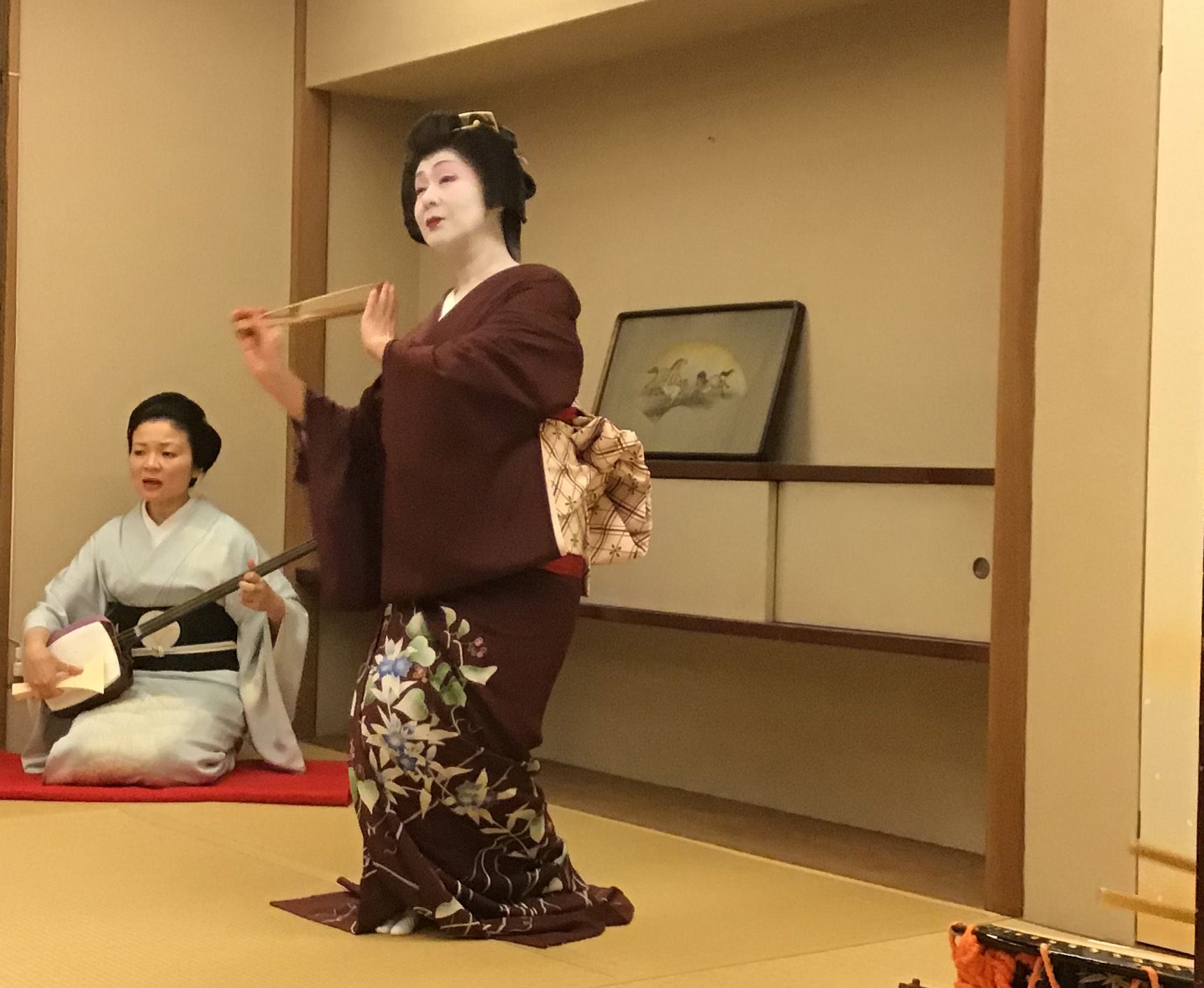 落ち着いた茶室様式の個室を備える金村で、芸者さんとの撮影をお楽しみください。