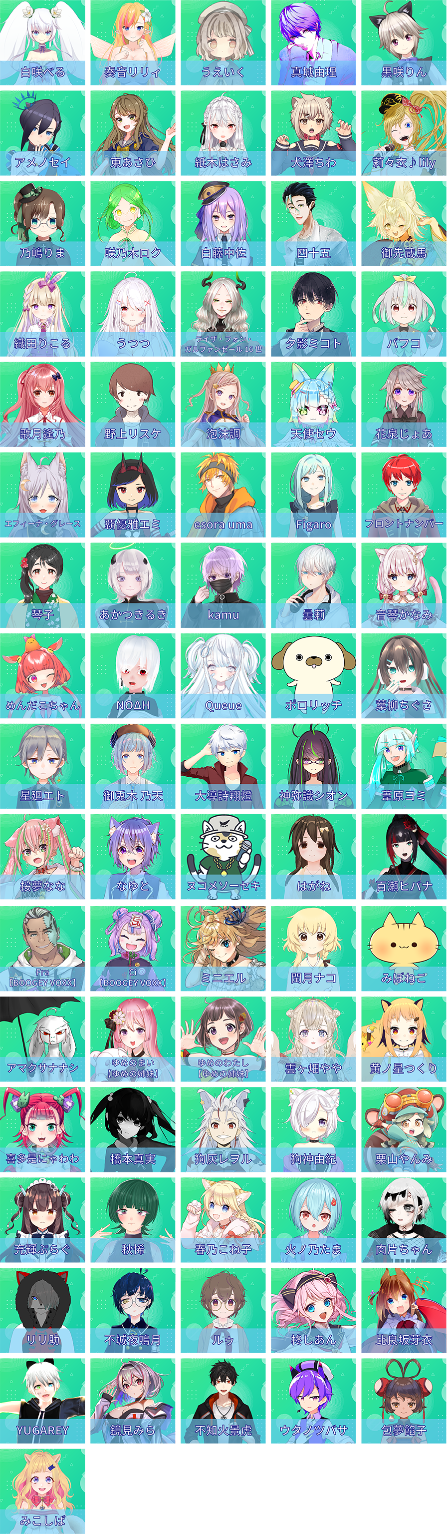 <Vtuber参加者>(150組:161名)