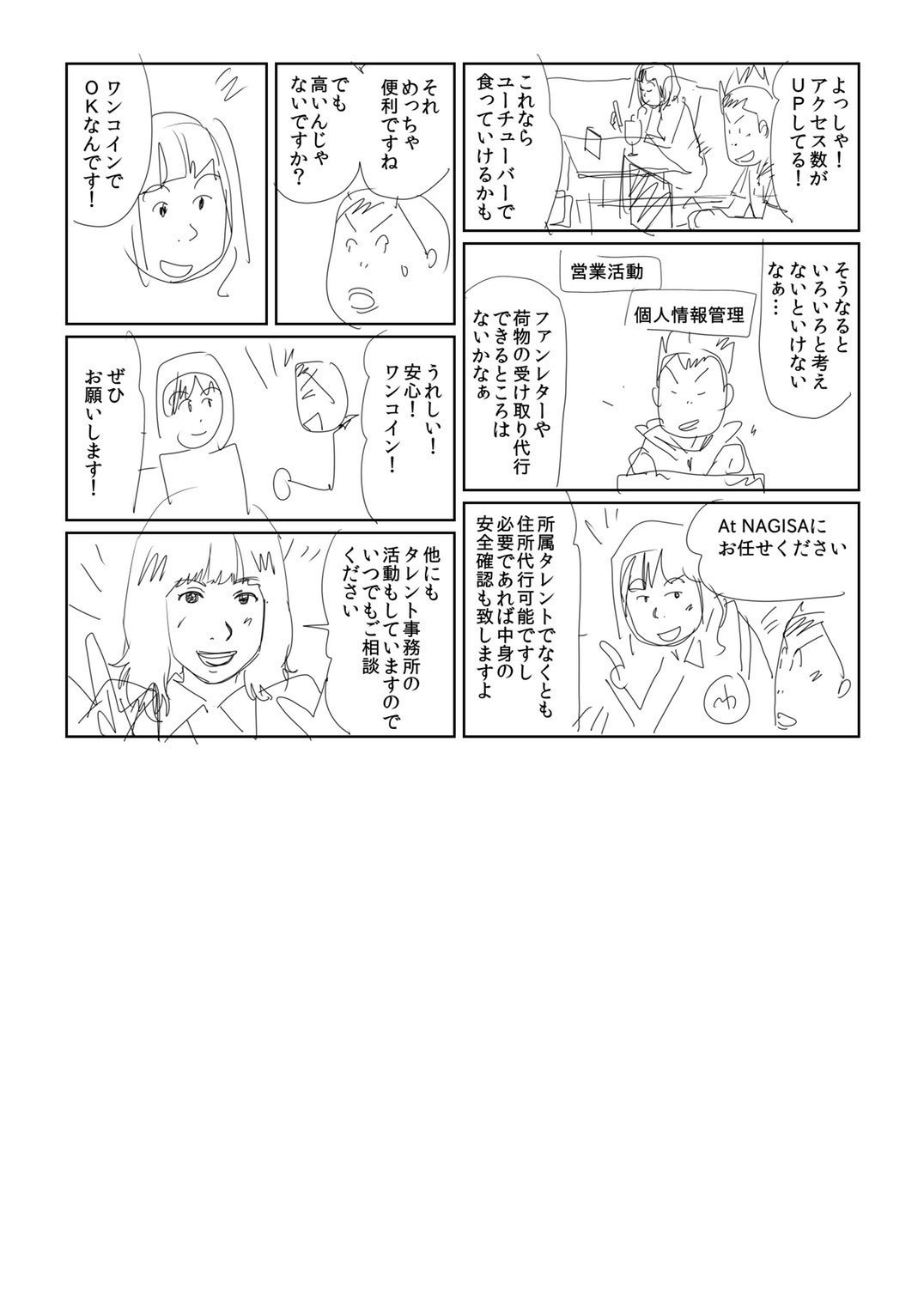 漫画化以降にAt NAGISAが改めて作成する住所代行サービスの宣伝動画に当プランを選択頂いた方のお名前をクレジット記載させて頂きます。