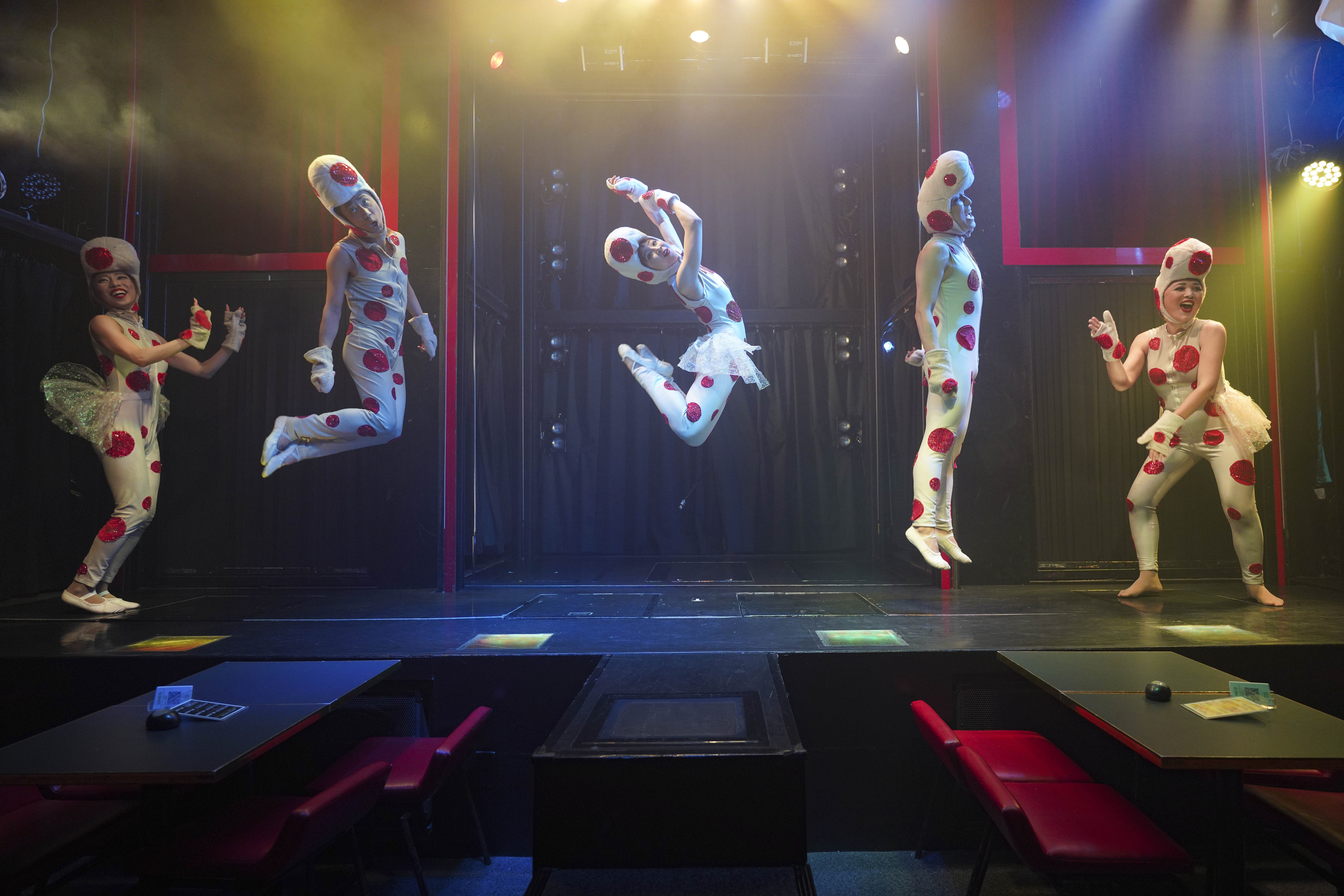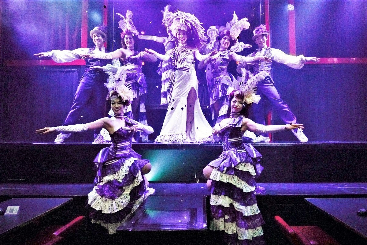 笑いあり涙ありそして時事ネタありとダンサーが早着替えを駆使して昔懐かしい名曲から最新曲までを 盛り込んだ10パターン以上ものナンバーを踊り上げます。