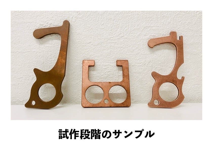 ですが例え抗菌作用が強くとも、使い心地も大切だと思い、何度も試作を繰り返して参りました。そしてその都度、問題点を改良し今回のタッチレスオープナー(カナビラ型)に辿り着いた次第です。