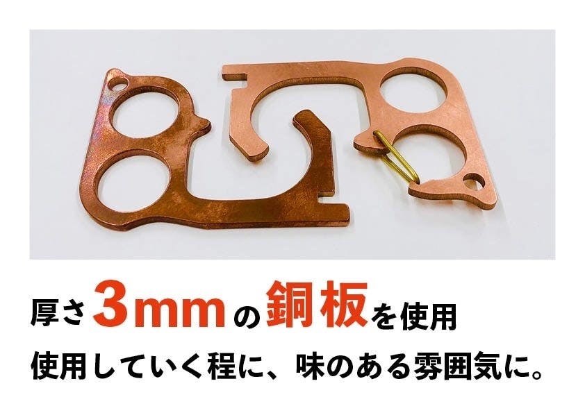 素材選定の結果、このタッチレスオープナーを純銅の3mm厚の板より切り出したものにしました。