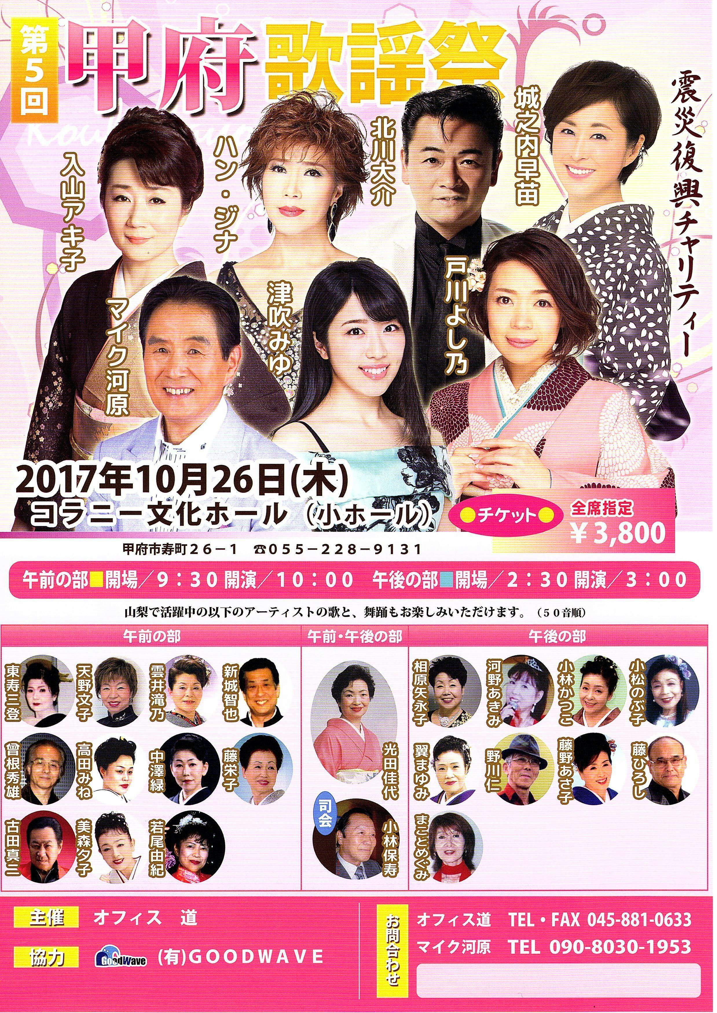 「オフィス道」としては2013年から甲府市で「甲府歌謡祭」を年に1回(2回公演)開催してきました。