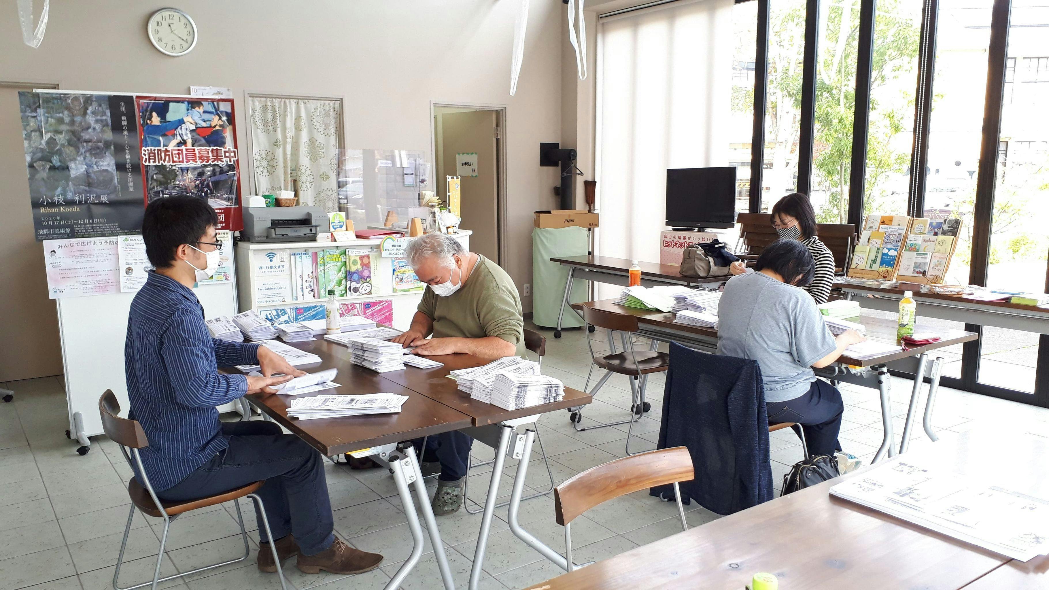2020/10/19 17:11☆活動報告第21弾☆すっかり冷える飛騨地域です。我が家もストーブをついに出しました。みなさまの地域はいかがでしょうか?さて、今日は大変お待たせしておりましたクラウドファンディングでご支援くださった皆様へ お礼状と受領証明書の発送完了のお知らせです。まちづくりスポットでは隔月に会報等のお知らせの発送作業をボランティアさんの力を借りて実施しています。今回は昨日と今日にわたり、お礼状と受領証明書の発送作業も一緒におこないました。お金の支援だけじゃなく、作業を通して一緒に医療従事者にエールを送ろうと、二日間総勢14名のボランティアで「ありがとう」の気持ちを封入する作業をしました。 ★加工の知恵★栄養ドリンクの空き瓶で折目に圧かけると綺麗に折れるよ~とボランティアスタッフさんに教えてもらいました。思わずパシャリ。 医療支援のプロジェクトを担った行政職員も作業に参加長らくお待たせしましたが、もうすぐ皆様のお手元に届きますので、お楽しみに!受領証明書は、大切に保管いただき、確定申告等の際にご提示ください。税制控除の対象となります。 もっと見る