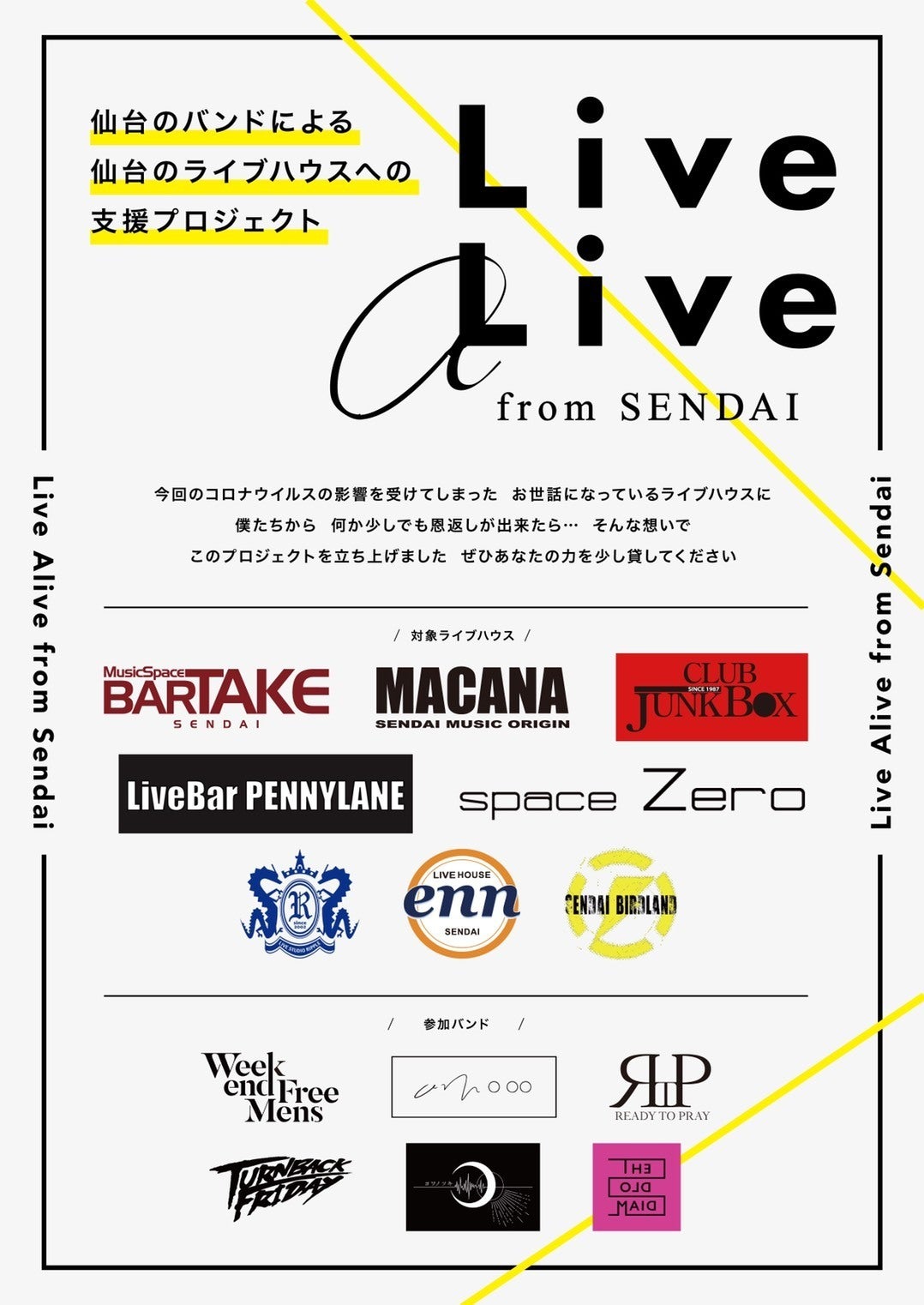こんばんは。仙台のライブハウスに何かしたいという想いを形にするために「Live Alive from Sendai 」を