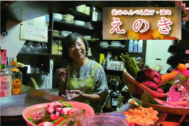 東京、渋谷の大通りから少し入った、赤い提燈が灯る「渋谷のんべい横丁」で34年でお店を開ける小体の店「酒処 えのき」。店主であり、常連客の相談相手(?)の、チズルさんセレクトの小気味よいJazzを聴きながら、選りすぐりのお酒とワイン。アットホームな気持ちになる美味しい料理に舌鼓を打つうちに、外の喧騒を忘れてしまいます。常連さんも、初めての来訪者も、学生さん(20歳以上)も、サラリーマンも、女性も男性も、日本人も外国からのお客さまも、老若男女、ここに来るお客さんは、皆、チズルマジックにかかり、初対面でも会話がはずみます。