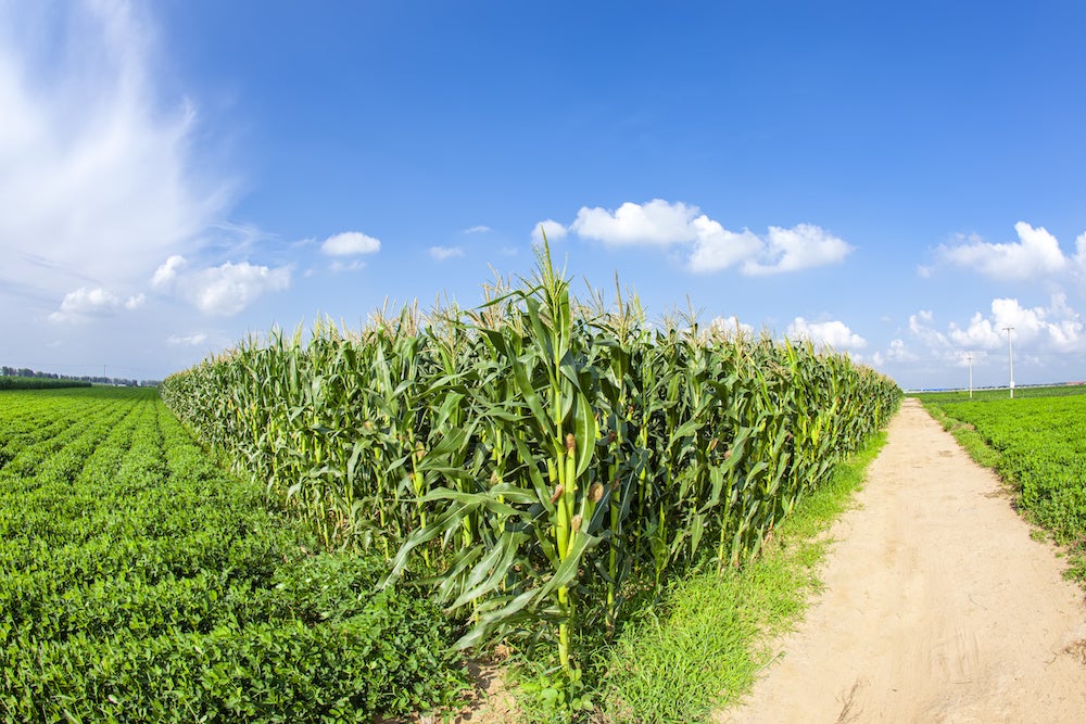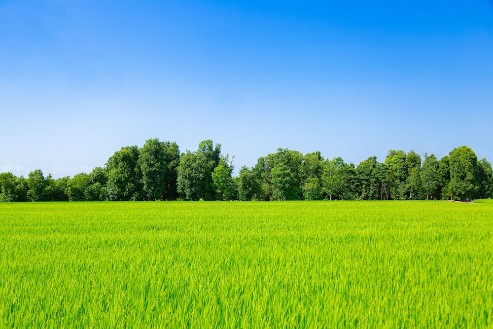 (1本の大通りを渡ると、目の前に畑や田んぼ道が出現)