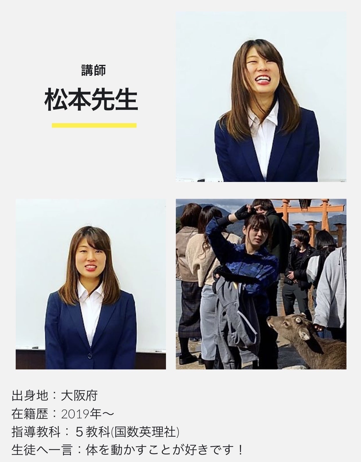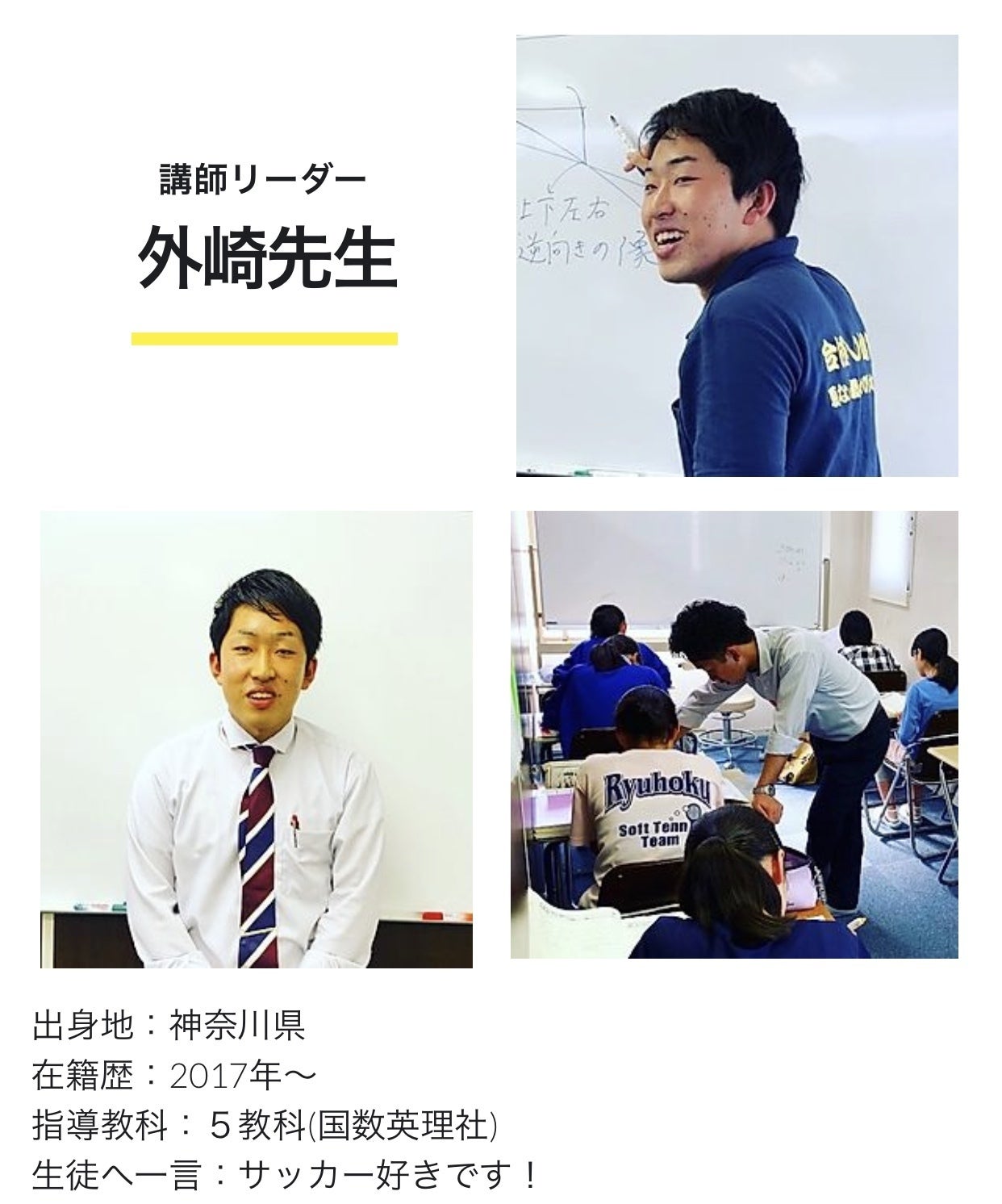 ※紹介スタッフ以外にも常時15名程度で日々の指導にあたっております。