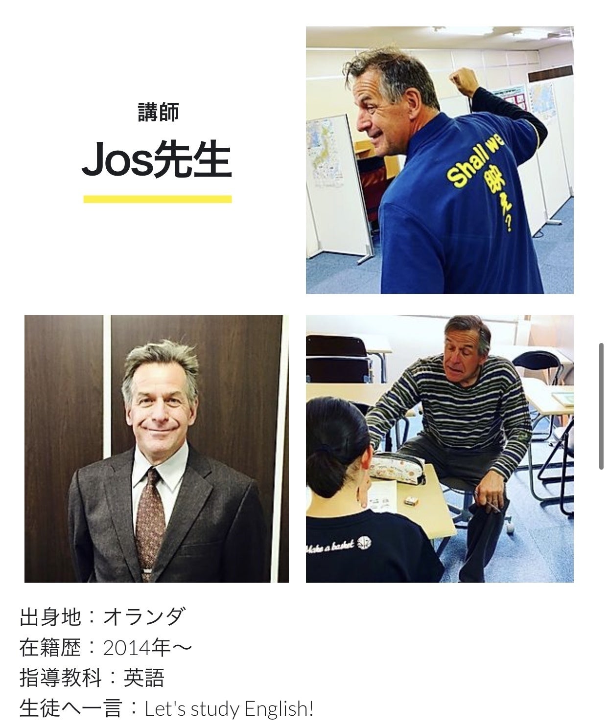 バラエティー豊かなスタッフが授業を担当します^ ^