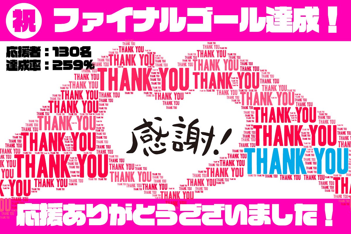 【お礼】ファイナルゴール達成&支援者数130人!ありがとうございました!!