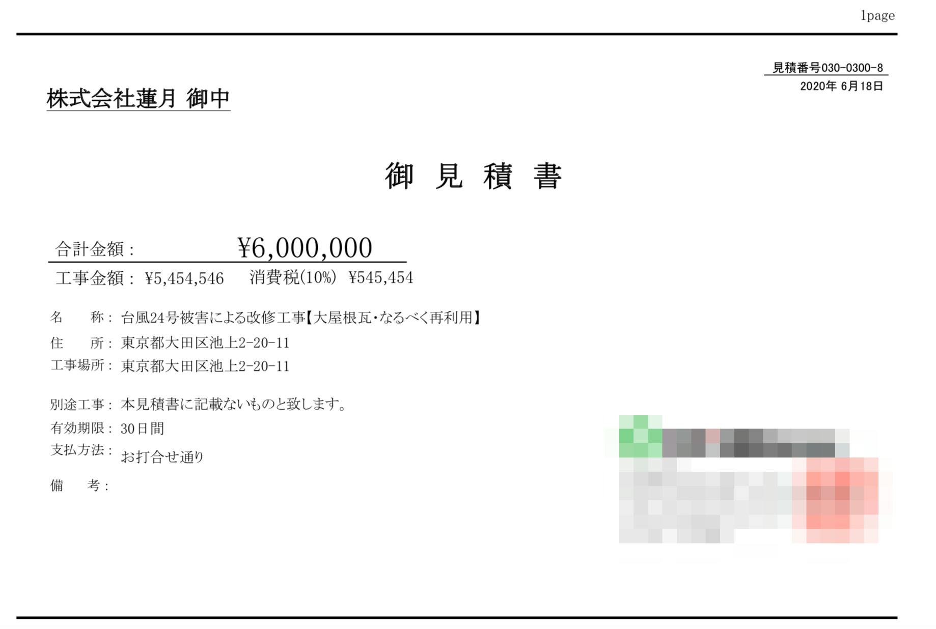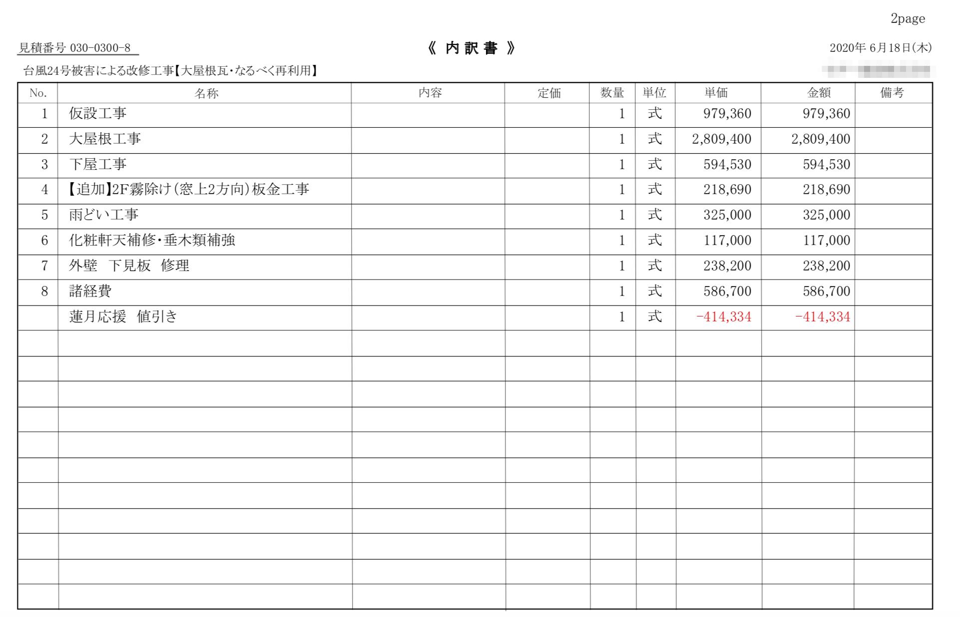 修繕費のお見積りは下記の通りです。