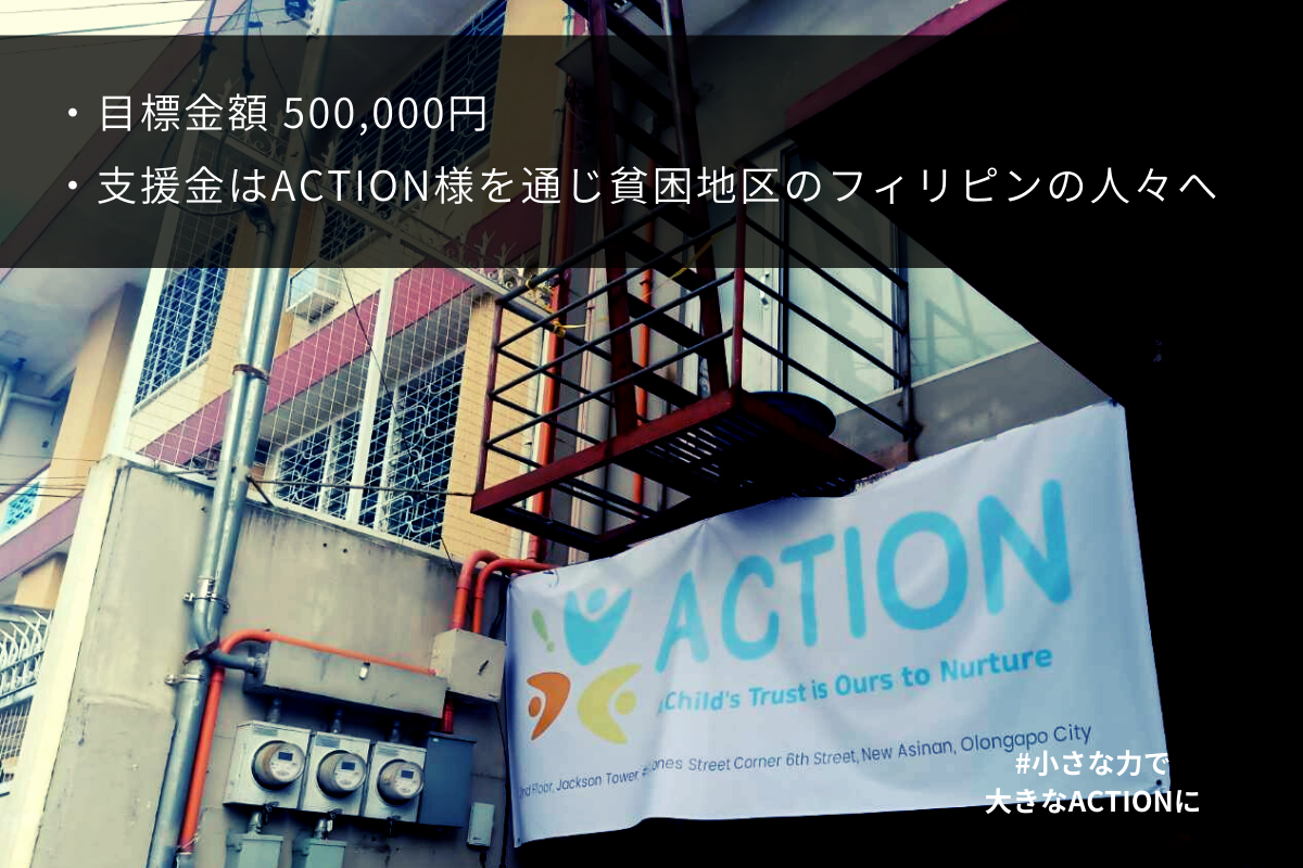 今回のプロジェクトで集まった金額はNPO法人ACTION様ご協力のもと、フィリピンで収入がなく生活が困難な貧困地区への支援とさせていただきます。