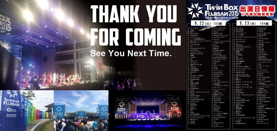 TBAのオープン3周年では記念の野外フェス「Twin Box Fujisan 2015」を2Days開催。2日間で総勢約150組のアイドルグループのみなさまにもご出演いただきました。