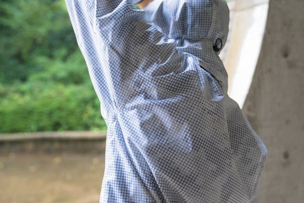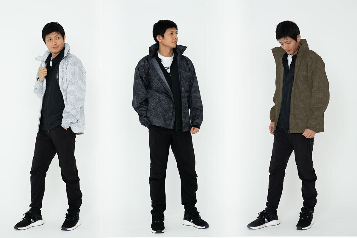 十分な防水性と快適性を備えながらも、着用時のシルエットにもこだわっています。従来の日常用雨具にありがちな身頃のダボつきを抑え、普段羽織るジャケットと同じようなスリムなシルエットに仕上げ、それでも着心地は損なわない絶妙な立体裁断を実現しています。