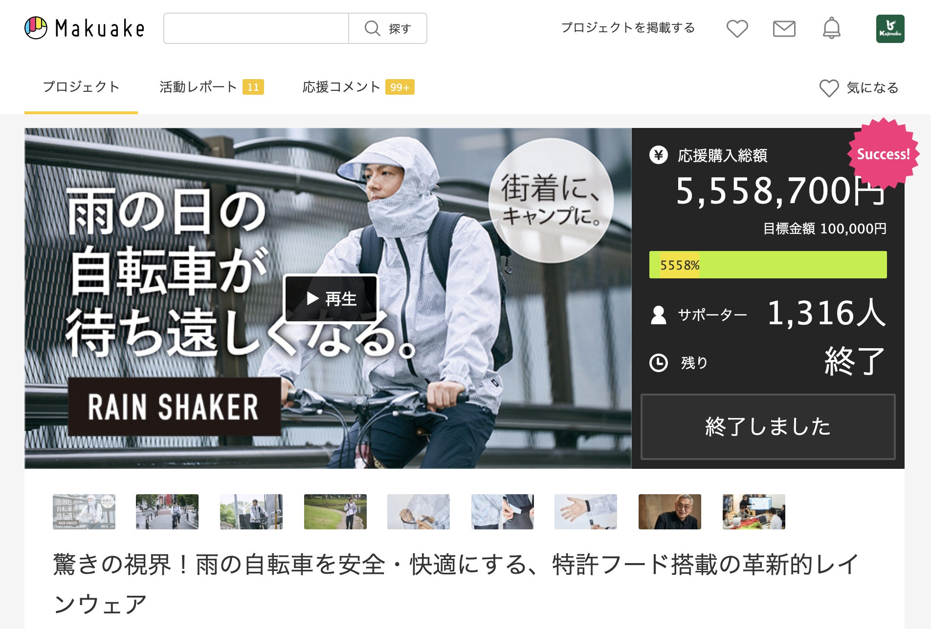多くの方にご支援いただき、形になったレインスーツ