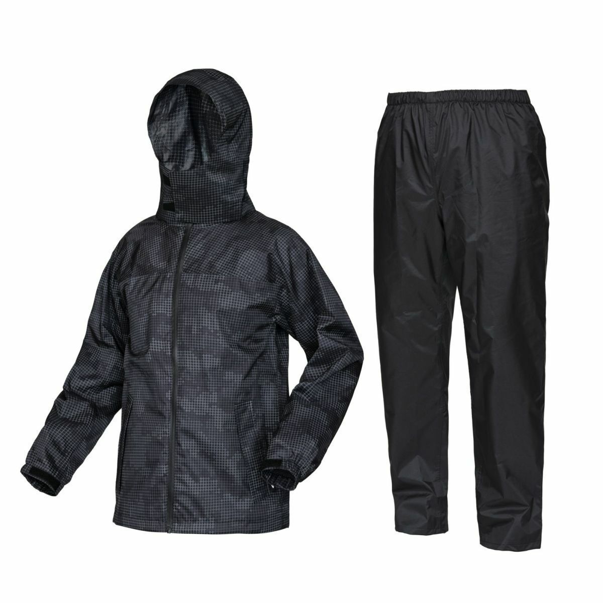 ジャケット・パンツの上下セット。専用のレインバイザーが付属でついています。