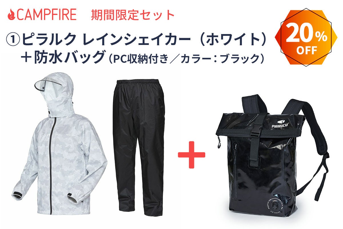 今回は、当時のプロジェクトにて、ご支援者の声より「通勤用に、防水性能が高いバッグ(背中に背負っているバッグ)も合わせて欲しかった」という声をいただき、まさにこちらの写真で使用した防水バッグ『GP-010 バックパック 20L』を、CAMPFIRE限定セットとして実現する運びといたしました!