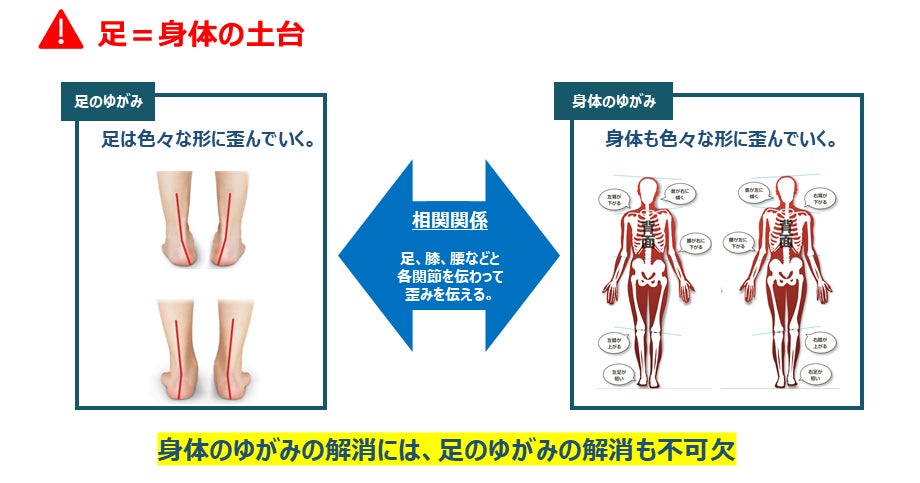 足の骨格が崩れることで、身体の全体的なバランスが崩れてしまうことがあります。