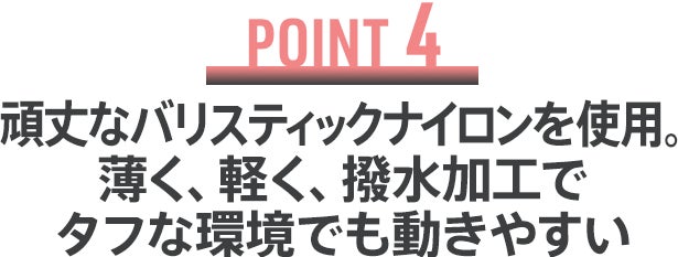 バリスティックナイロンは防弾チョッキにも使われ、ロッククライミングで堅い岩に擦っても傷ができないほどの耐久性を誇ります。