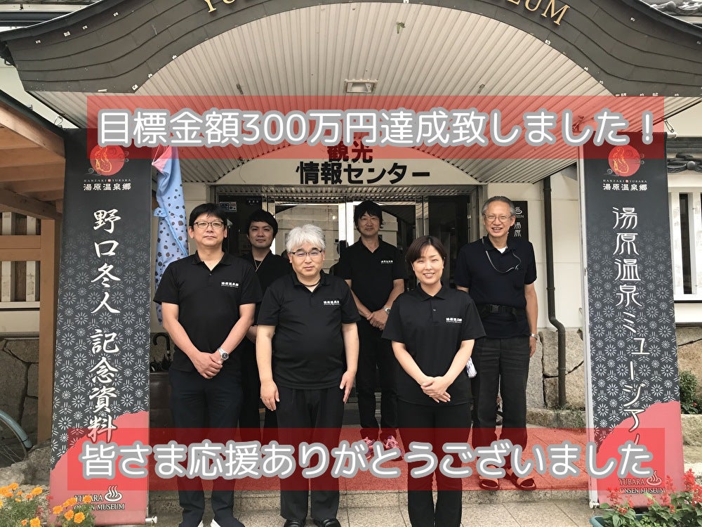 2020/08/03 18:466月4日より開始したクラウドファンディング『きんさい!きんさい!湯原温泉本物温泉で癒しを、みらい宿泊券付応援企画』8月2日をもちまして60日間のプロジェクトを無事終了することが出来ました。皆様のご支援をいただき、目標金額300万円を達成することができました。ひとえに、この企画にご賛同いただきました皆さまのお陰でございます。感謝申し上げます。クラウドファンディングを始めるにあたり、コロナ禍でお客様が減少する中自分たちでも何かできないか話し合い、出来ることをやっていこうと思いをひとつにしてこのプロジェクトをスタートさせていただきました。今回のプロジェクトを通して、皆様より励ましのお言葉、温かい応援のお言葉をいただき、多くの方々が湯原温泉を愛して下さっているということあらためて感じることができました。本当にありがとうございます。~一年後も 百年後も ずっと湯原を~この言葉を胸に刻み、これからも力をあわせて頑張っていきたいと思います。どうぞこれからも湯原温泉ファンとして応援してくださいますよう心よりお願い申し上げます。岡山県湯原温泉 湯原町旅館協同組合 一同※リターン品のみらい宿泊券・ギフトセット等は8月20日頃より順次発送をさせていただきますので、今しばらくお待ちくださいませ。不明な点などはお問い合わせ下さい。(0867-62-3024) もっと見るダムといで湯のまち 露天風呂砂湯と湯原ダム