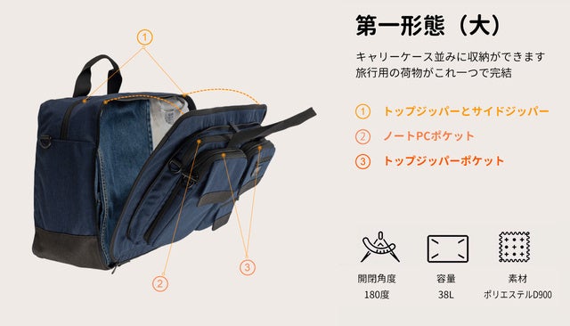 バッグは一つのまま。 スマートに旅行を続けられます。