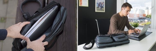 出先で第二形態(中)にしてもノートPCをそのまま持ち運べます。