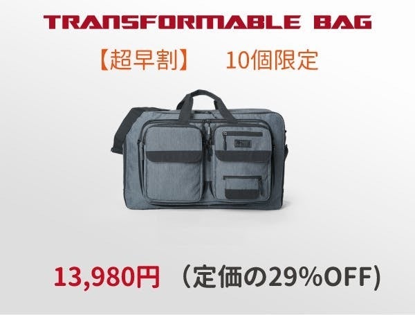 2020/07/16 15:35こちらの活動報告は支援者限定の公開です。トランスフォーマブルバッグ キャンペーン終了いたしました